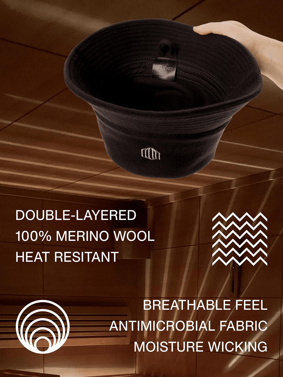 The SWETT Sauna Hat is made from two layers of 100% all-natural merino wool. Its heat resistant, breathable, and sweat wicking fabric keeps you from overheating in the sauna and protects your hair from drying out and roots from burning. Not only that, while traditional sauna hats have their place in bathhouse culture, the SWETT Sauna Hat comes in a unique bucket hat design that offers a modern look.